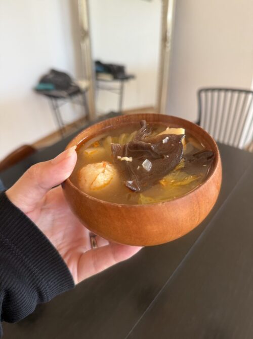 温かいスープで内臓をゆるめ、豆乳のトリプトファンが“幸せホルモン(セロトニン)”の分泌を助けます。