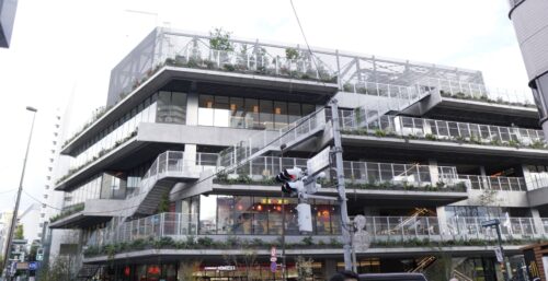 地上4階・地下1階の複合施設で、テラスや緑が多くとても開放的!